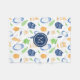 Monogramfilt av anpassningsbar i ljust och färglöst uggla och fjädrar illustrerar mönster i orange, kalkgrönt och mörk marblått.