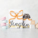 Orange bow jingle Mingle retro boho family namdate Presentpapper