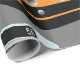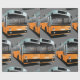 En orange buss parkerade. Den här designen ser ut att vara verkligen på dessa figursättningsPappra