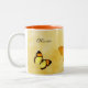 Sunny kaffe mugg med en trio av drömmande orange- och gult-fjärilar och plats för din personlig. Detta ser särskilt underbarare ut på vattenflaskan, och den poster utskriften finns också på Rosa Ladybugs Zazzle-butik. Skapat med bilder från Mel på Outlaw By Design och Barry's Ställe