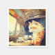 Orange Cat Drinking Tea i en vintage tåg, konsmålning för kattälskare.