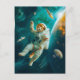 An orange cat in a red suit floats freely in space surrounded by debris. Earth and stars form the backdrop of this whimsical interstellar moment.