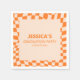 These modern retro graduation party napkins feature a bold orange checker border with clean centered typography. Designed to coordinate with matching invitations and signage, they create a cohesive 2026 celebration setup. Personalize with the graduate’s name and class year for a polished party detail that feels current and intentional. Perfect for high school or college graduation gatherings.