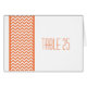 Chic och modernt Bordsnummer för Chevron Gräns med ett enkelt chevron mönster gräns i orange och vitt. Den här snyggten anger tonen för ett elegant bröllop. Enkel att anpassa, lägg helt enkelt till rätt bordsnummer i den text fält tillhandahåller. Klicka på Anpassa om du vill söka efter fler anpassningsalternativ.