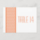 Chic och det moderna vykortet Chevron Gräns Bordsnummer med ett enkelt chevron mönster gräns i orange och vitt. Den här snyggten anger tonen för ett elegant bröllop. Enkel att anpassa, lägg helt enkelt till rätt bordsnummer i den text fält tillhandahåller. Klicka på Anpassa om du vill söka efter fler anpassningsalternativ.