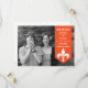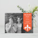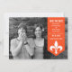 Modern och elegant Chic Flourish Banner Photo Spara datum meddelande med en pilbanderoll i orange med en enkel loppur de lis-ornament. Den här klassen sparar datuminbjudan som perfekt för att meddela ditt kommande bröllop. Enkel att anpassa, lägg bara till din egen foto- och bröllop-information. Klicka på Anpassa om du vill söka efter ytterligare anpassningsalternativ.