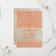 Modern med en vintage twist är Chicen Chevron Spara datum meddelande. Den här utformningen har en antik papper bakgrund och en zigzag chevron mönster i orange. Enkel att anpassa, lägg bara till information om bröllop. Klicka på Anpassa om du vill söka efter fler anpassningsalternativ.