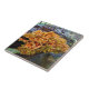 För svampjakt på fläkt! Keramiskt plattor som innehåller en fotobild av den ljusa, orange färgad Chicken i Skogen Mushroom, även känd som Chicken Mushroom, Chicken Fungus och Sulfur Shelf. Och ja, det här svamprummet är ätbart! Gör en underbar kökstrivet!