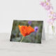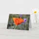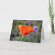 En slående bild av en Kalifornien-orange-chiffonvallmo med accenter av lavender-färgadens vilda blommor mot en vägg. En underbar blommigt hälsning för vem som helst!
