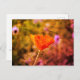 En slående bild av en Kalifornien-orange-chiffonvallmo med lavendelblommor och stonewall i bakgrunden. En slående blommigt som är med vem som helst!