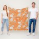 Orange Chinoiserie Blommigt Monogram Fleecefilt