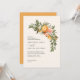 Orange citrus blommar modern rustik vattenfärgsblommigt och inbjudningskort för lövbröllop. Vackra handtryckta blommigtens vattenfärger och modern skripttext. Modern trenddesign
