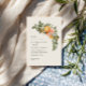 Orange citrus blommar modern rustik vattenfärgsblommigt och inbjudningskort för lövbröllop. Vackra handtryckta blommigtens vattenfärger och modern skripttext. Modern trenddesign