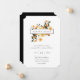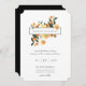 Chic och modern typografi, bröllopsinbjudan som har vattenfärg botaniska bouquet av frukt och blommigt av citrusfrukter och orange. Baksidan av inbjudan har solid svart färg.