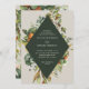 blommigt för orange av citrusfärgen och inbjudan till bladbröllop. Vackra handtryckta blommigtens vattenfärger och modern skripttext. Modern trenddesign