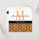 Orange Damask Monogram bröllopsinbjudan 3 Inbjudningar