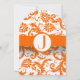 Mongram Elegant Vintage Orange Damask Bröllbjudan - Visas med Orange och Grått Lettering, men du väljer färg i typsnitt.