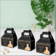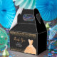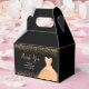 A beautiful peach orange themed elegant watercolor dress gown on a black background with faux glitter at the top and bottom of the favor box.