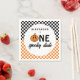 Orange One Spooky Boy Personlig Halloween 1-napkins på födelsedagen - fira din lilla snubbs stora en på en scoky och roligt i Halloween-säsongen med den här söta orangen och den svarta schackerbrädet för smiley face-pumpa, första Boo-Day Party-temat för pojkar. Med svarta och vita schackbrädor och orange och vita schackbrädor, klassisk Halloween färg. En smiley face-pumpa med blixten ögon lägger till estetisk teetik till roligten, refeoky-säsongen. Öka din party-dekoration med personlig-dagslöjor! All text kan redigeras.