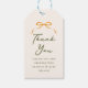 Denna enkla tacksamt-gåva-etikett är perfekt för fester, bröllop, företagsgåvor och mycket mer. En orange bandbåge sitter ovanför upphöjd och enkel text i en handskriven kalligrafisk stil som passar bra med en texturerad all caps serif-teckensnitt för en exklusiv look och kan enkelt anpassas för din händelse.