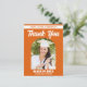Detta moderna orange anpassade senior examens tack-kort har klassisk vit typografi av ditt universitetsnamn för klassen 2025 och ditt seniorfoto under en trendig båge. Anpassa med ditt examensår under den chic handskrivna stilen nedanför ditt fotografi.