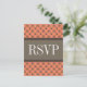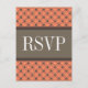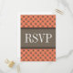 Trendig och chic Finare Lattice Bröllop OSA Postcard med en snyggt cirkel och diamant som studerade mönster över en pulserande nektarin orange bakgrund med en bred, tvåtonad brun gräns. Denna elegant OSA kort är perfekt för ett modernt bröllop. Enkel att anpassa, lägg bara till din bröllop-information i den text fält tillhandahåller. Klicka på Anpassa om du vill söka efter fler anpassningsalternativ.