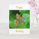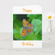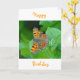 Cute ange butterfly sitta på grönt löv, orange Text: "Grattis på födelsedagen"