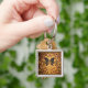 ORANGE FJÄRILAR PÅ LEOPARDTRYCK FYRKANTIG SILVERFÄRGAD NYCKELRING