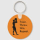 En rund orange nyckelring med en bild av en basketspelare som förbereder sig för att kasta boll i grekiska Art stil med ord "Tåg". Kasta. Vin. Upprepa." Definitivt den universella vinnande formeln för alla idrottsutövare.