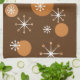 Ett modernt århundrade inspirerade rymdåldern 1950-talet mönster med geometriska sputnikstjärnor. Paletten färg är brun, brun och bränd orange