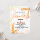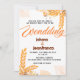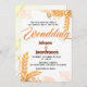 Moderna högljudda inbjudningar av vete från gren med ljusskuggor och höst löv i jordnära toner som rostbildning, bränd orange och terracotta. Perfektens val för fallbröllop. Baksidan har en subtil arrangemang av vete med hög upplösning i gren. Baksidan har en ljus orange och en gult med texturerad bakgrund.
