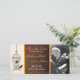 De här sparar datumet för fotokort från bröllop, som innehåller en fantasifull fågelburk med snurrar och orange hjärta, och två söta fåglar, i chokladbrun, som hänger mot en elfenben, texturerad papper bakgrund med avklädd handskrift. Ett glänsande, starkt orange-band separerar en chokladbrun sidlist, som innehåller lydelsen för bröllopsinbjudan i elfenben och guld orange. Uppmaningsformuleringen, i alternerande skript och klassiskt serif typsnitt, och ett pars förlovning foto är helt anpassade.