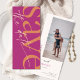 Dessa 4 x 9-tumsdisketter har en minimalistisk utformning i vibrant orange och kräm brev på magentans bakgrund med platshållare på baksidan för det förlovade paret namn, bröllop datum och platsens information och ditt favoritfoto!