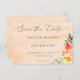 Då sparas datumkortets utformning med färgen Fäst färgad vattenfärg ro i gult, mjuk orange, brunt och rött på orangens bakgrund med vattenfärg. Kortet är en del av Rustic Gult, Orange & Peach Ro Bröllop Suite med kort skapat av enbart Farmhouse Press.