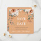 Blommigt och lätt Orange Peach Bröllop Square Spara datum meddelande Kort Elegant vattenfärg blommor och löv i neutralt och jordnära färg ovanpå en grått-trä-kom tillsammans för att göra ett fantastiskt modernt och elegant sent sommar-/fallbröllop. Behöver du mer utrymme? Kolla in vår ytterligare version med text baksida och bröllopsinbjudan som tillval. Dubbla vid utskrift. Photo Bild bak. Innehåller kuvert. Orange, terracotta, sage, kräm, persikor och gröntar med chic, rustik boho inspirerade till design på lätt trä.