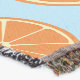 En orange frukt sommaren mönster. En vacker utformning för älskare av orangar och citrusfrukter. Färgfläckig sommarfrukt illustrerar mönster med tonerna orange och pastellblått. Utformning av grum eller älskare av frukt. Sommarviber! Perfekt födelsedagspresent, daghemsdekoration, barnrumskonst, hemdekaler, Julklapp eller gåva till något annat särskilt tillfälle.