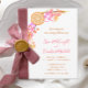Med ljusa rosa och orange vattenfärgblommor och orange frukt är dessa inbjudningar perfekter för sommar-, vår- och trädgårdsbröllop. Hitta matchande objekt i min butik.
