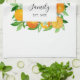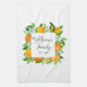 Köket med den här moderna eleganten kökshandduk! Med en botanisk vattenfärgdesign av frukt och blommor i orangen är det underbart för sommarvibes. Anpassa calligrafskriptet i blommigt ram för personlig beröring. En citrusinspirerad gåva från snyggten till bröllop eller husvärmare!