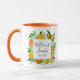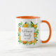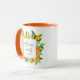 Sip i stil med detta botaniska mugg med orange frukt och blommor i en vattenfärgad blommigt ram. En modern elegant sommargåva med anpassadets kalligrafiskript! Perfekter för uppvärmning i hemmet eller sommartid i bröllop.