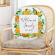 Ta med sommarvibbar till din dekoration med den här eleganten runt kudden! Med frukt, blommor och blommigt med orange, är det underbart för bröllopsgåvor eller ditt hem. Anpassa med kalligrafiskript för ett botaniskt och modernt citrusdiagram!