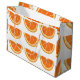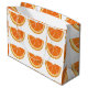 Orange Fruit Slice Large Gift Bag-originalutformning av Nisha Prabhu. Ge en underbar spricka av färg till din gåva ge med vår pulserande Orange Fruit Slice Large Gift Bag! Perfekt för födelsedagar, sommar-party, eller vilket glatt firande som helst, den här rymliga presentsäcken har en fantastisk utformning av saftiga orangar som kommer att göra det lättare för vem som helst. Det fruktsegment av orangen som fångas i öga lägger till en roligt och ett nytt levande utseende till dina gåvor, skapar det som ett perfekt val för fruktens älskare och dem som har stänk i färg. Perfekt för alla tillfälle, det är ett underbart sätt att uttrycka omtänksamhet och kreativitet samtidigt som du skapar att dina gåvor är tydliga.