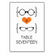 Quirky och chic Geeky Glasses Bröllop Bord Card med en orange som är täckt av två par geekyeglass, ett manligt par och ett giglipperpar som representerar stam och brud. Det här sofistikerade kortet för bordsnummer är perfekt för ditt nervösa bröllop! Enkel att anpassa, lägg helt enkelt till rätt bordsnummer i den fält som tillhandahålls. Klicka på knappen "Anpassa" för att hitta ytterligare anpassningsalternativ.