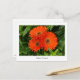 Orange Gerbera Daisy. Gerbera Garvinea vykort. Fullständigt anpassade med text på vykortets framsida och baksida.