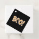 A playful Halloween favor tag featuring "BOO!" in orange gingham letters with a cute ghost. Perfect for treat bags, party favors, or Halloween decorations.