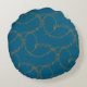 Orange Gold on Blue Music Note Pattern Rund Kudde