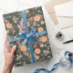 Bläddra i presenterna i de här vackert handmålade vattenfärgsillustrationerna pappert, med en snygg utformning av orange, gräs grenar och känsliga rosa blommigtar på mörk grönt. Den mjuka, varma färgen och den tunna detaljen skapar en charmerande och elegant, perfekt för att ge presenter lite helgdag. Idealisk för julklappar gör den här unika pappra inslagningen att dina gåvor blir synliga under träd och att dina nära och kära blir glada.