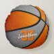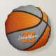 Den här basketbollens färg-kudde för en pojke eller flicka har en basket med omväxlande orange och grått-färgade paneler - anpassa med namn i ett "autograph"-stil-teckensnitt som ligger ovanför idrottsmannens jersey-nummer - av katz_d_zynes