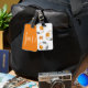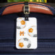 Det här fotbolls-temat-bagagetaggen är helt enkelt designat med tre slumpmässigt arrangerade orange-, grått- och vita fotbollar - personliggör med spelare namn och monogram på framsidan, adress på baksidan - av katz_d_zynes