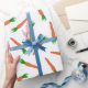 Uppmuntra en hälsosam kosthållning med denna papper som innehåller illustrationer av orange- och grönt-morötter mot en vit bakgrund. Över hela mönster har roligt stil som är perfekt som ett unikt Påsk-presentkort eller som en del av inslagningen av grönsaksmatade gåvor.