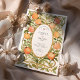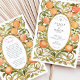 Fira din union med den här häpnadsväckande unika bröllopsinbjudan, inspirerad av Art nouveau-rörelsens fantastiska elegans. Den här designen har en lush-vattenfärg som illustrerar mogna orangar och känsliga blommar av vit orange, vilket skapar ett sjudande och sansat ram. Frukten och blommorna är lätt sammanflätade med stiliserade löv och vinstockar av grönt, vilket utgör en intrikat gräns som påminner om en sol-torkad grova. En ornatoval ram i en antikisk guld-ton innesluter på ett vackert sätt dina uppgifter om bröllop, som presenteras i tidlöst typografi av elegant. Perfekt för en sommar, ett citrustemat, ett Tuscan- eller ett målbröllop, är denna inbjudan ett konstverk som kommer att locka dina gäster.